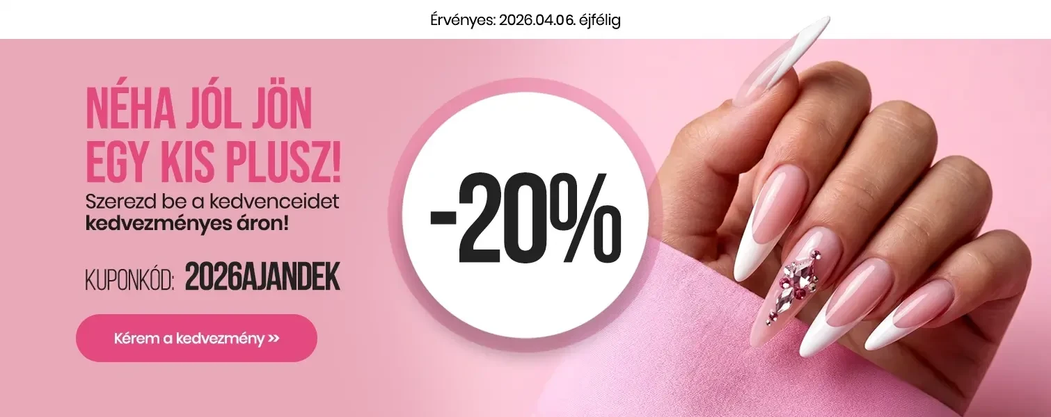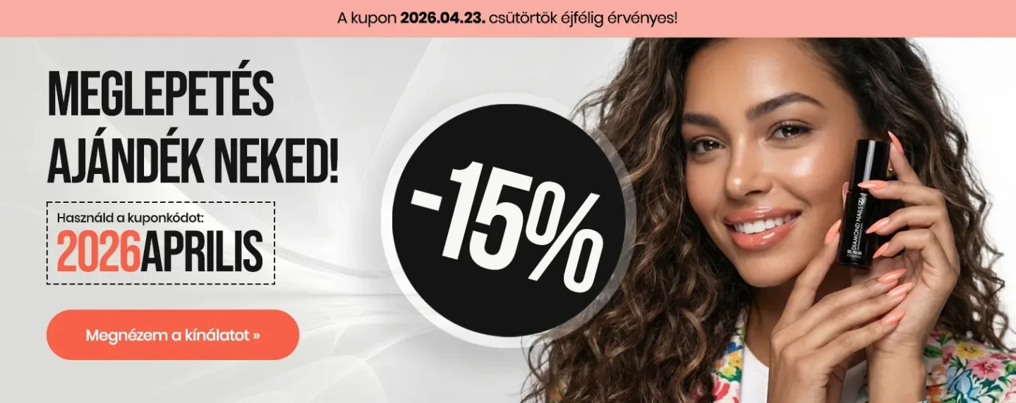 Több, mint két évtizede működünk sikeresen a műkörmös és kozmetikai cikkek piacán. Webáruházunkban és műkörmös boltjainkban, magas minőségű gél lakkok, kellékek, műköröm alapanyagok, körömdíszítők és induló szettek várnak kedvező áron. Folyamatos akciókkal és kuponokkal kedveskedünk minden kedves jelenlegi és leendő vásárlónknak. Diamond Nails webáruházainkban 15 000 Ft feletti vásárlásokat a GLS és FOXPOST-Packeta Group Futárszolgálatok ingyenesen kiszállítja. (Csak a GLS és FOXPOST-Packeta Group kiszállításra érvényes!) Webáruházunkban és debreceni üzletünkben kézfertőtlenítő és szájmaszk is kapható! Nézd meg a választékunkat, mert itt mindent megtalálsz, ami a professzionális műköröm építéshez szükséges.